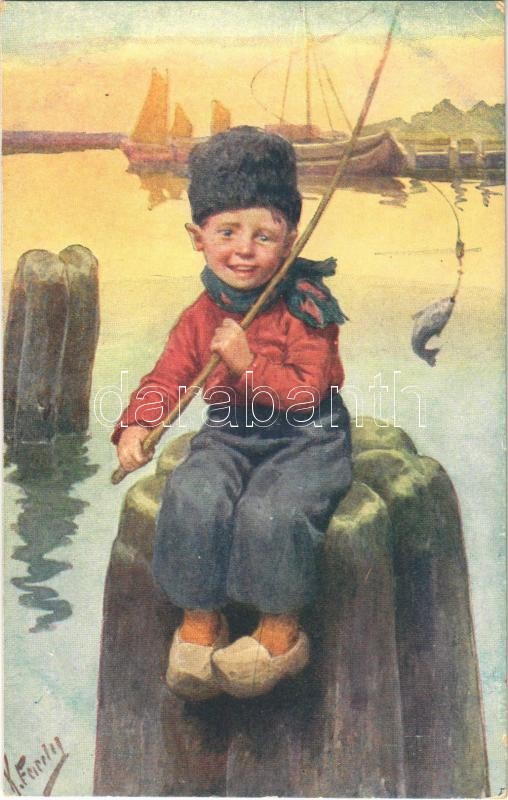 Children art postcard, fisher boy. B.K.W.I. 158-6. s: K. Feiertag (EK) https://www.darabanth.com/hu/399-Gyorsarveres/399.0/Kepeslapok/Gyerek~1000058/Children-art-postcard-fisher-boy-BKWI-158-6-s-K-Feiertag-EK~II2443695