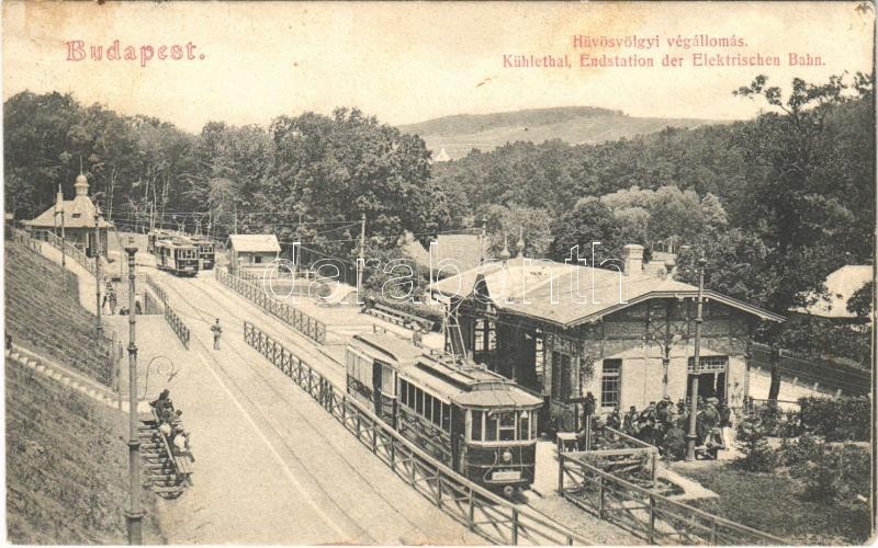 1906 Budapest II. Hűvösvölgy, villamosok a végállomáson https://www.darabanth.com/hu/399-Gyorsarveres/399.0/Kepeslapok/Magyarorszag~1000004/1906-Budapest-II-Huvosvolgy-villamosok-a-vegallomason~II2438454