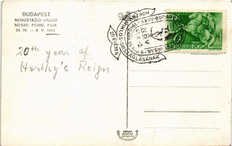 1942 Budapest, Horthy Miklós Magyarország Kormányzója megnyitja a Budapesti Nemzetközi Vásárt + "1942 XXXV. Budapesti Nemzetközi Vásár Horthy Miklós országlásának 20. évében" So. Stpl. (gyűrődés / crease)