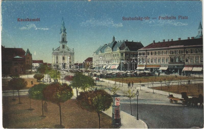 Leírás: Kecskemét, Szabadság tér, piac, Fekete Soma üzlete és saját kiadása