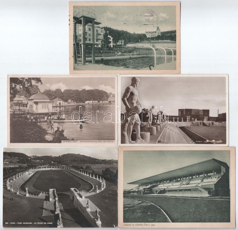 Leírás: 30 db VEGYES sport motívum képeslap: sportpályák, sportlétesítmények / 30 mixed sport motive postcards: sports fields and facilities