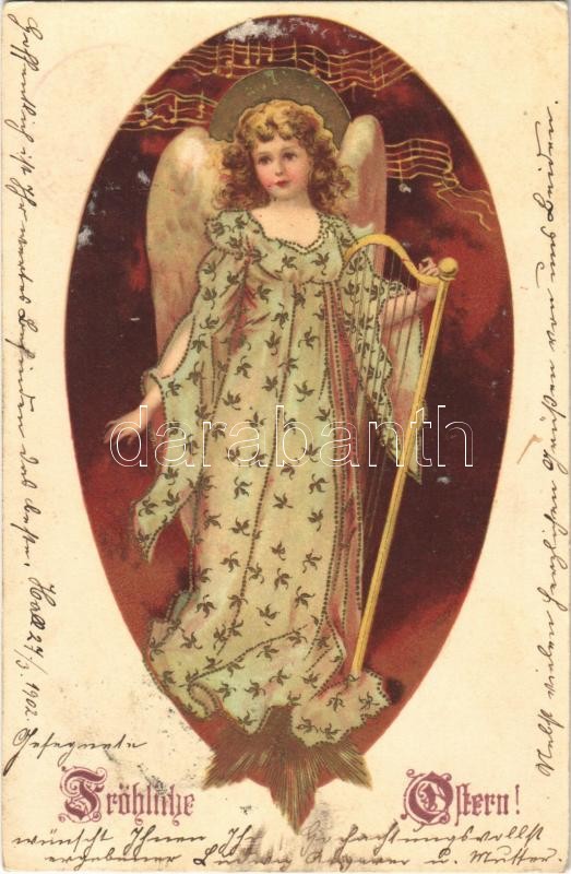 1902 Fröhliche Ostern! / Easter greeting art postcard, angel with harp... https://www.darabanth.com/hu/399-Gyorsarveres/399.0/Kepeslapok/Udvozlolapok-Unnepek~1000088/1902-Frohliche-Ostern-Easter-greeting-art-postcard-angel-with-harp-Winkler-Schorn-Engelserie~II2443801