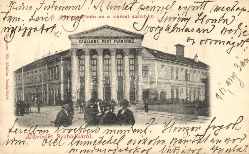 Szabadka, Subotica; Szálloda Pest városához, Városi színház / hotel, t... https://www.darabanth.com/hu/399-Gyorsarveres/399.0/Kepeslapok/Vajdasag~1000009/Szabadka-Subotica-Szalloda-Pest-varosahoz-Varosi-szinhaz-hotel-theatre~II1518995