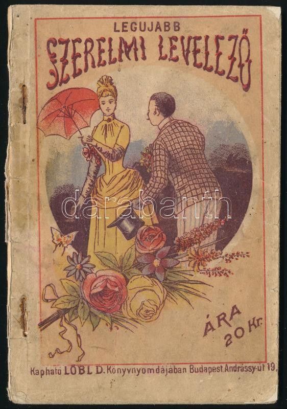 cca 1890 Legújabb szerelmi levelező, Löbl Könyvnyomdája, 64p https://www.darabanth.com/hu/399-Gyorsarveres/399.0/Konyvek/Konyvek-Egyeb-ritkasagok~1500019/cca-1890-Legujabb-szerelmi-levelezo-Lobl-Konyvnyomdaja-64p~II2434801