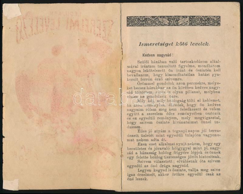 Leírás: cca 1890 Legújabb szerelmi levelező, Löbl Könyvnyomdája, 64p