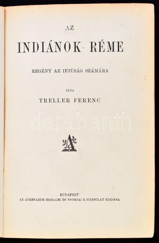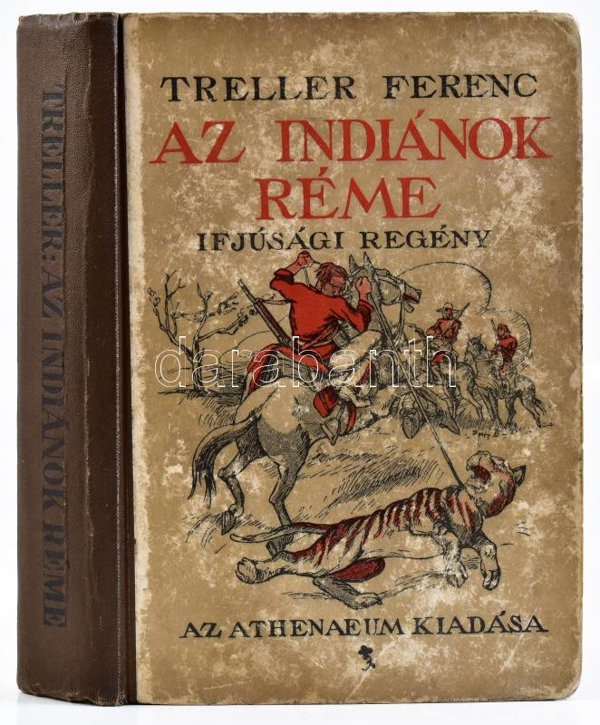 Treller Ferenc: Az indiánok réme. Regény az ifjúság számára. Bp., én., Athenaeum, 240 p.+1 (egészoldalas képtábla) t. + 4 (másolattal pótolt egészoldalas képtáblák) t. Kiadói kopott félvászon-kötés.