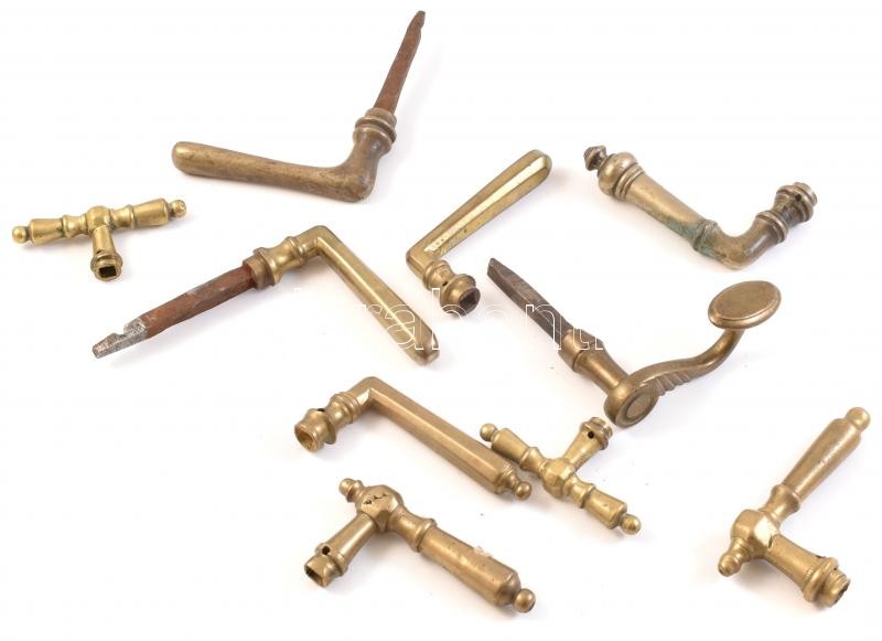 Leírás: 10 db klf. réz ajtó és ablak kilincs, kopott