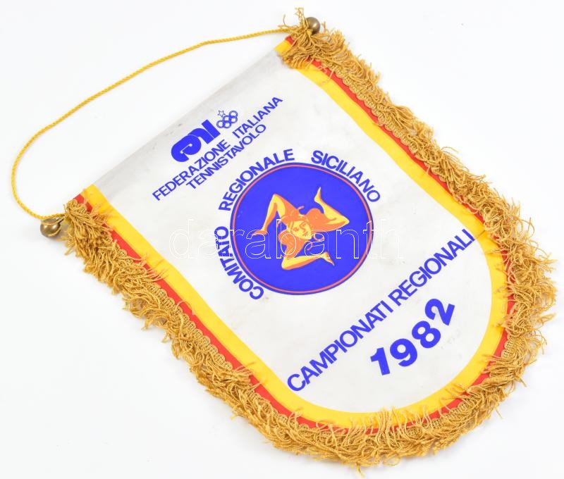 1982 Federazione Italiana Tennistavolo asztali zászló, 25×18 cm https://www.darabanth.com/hu/399-Gyorsarveres/399.0/Mutargy-papirregiseg-egyeb/Bolhapiac~500014/1982-Federazione-Italiana-Tennistavolo-asztali-zaszlo-25C39718-cm~II2433571