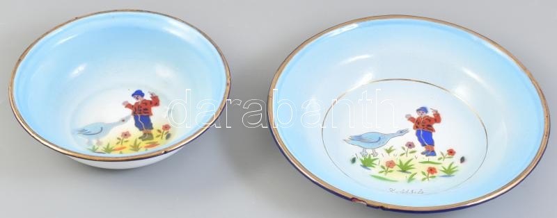 Leírás: 2 db Ludas Matyis zománc tál, kopott. d: 16 és 21 cm