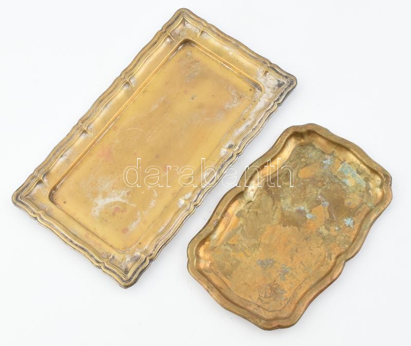 Leírás: 2 db réz, alpakka tálca kopott, m: 31x17cm, 23x15cm