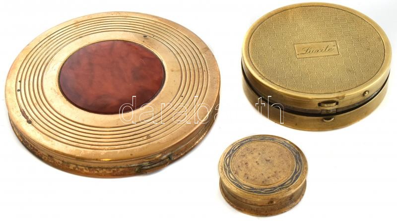 Leírás: 3 db különféle réz púder, kopott, d: 3 cm és 7,5 cm közötti méretben