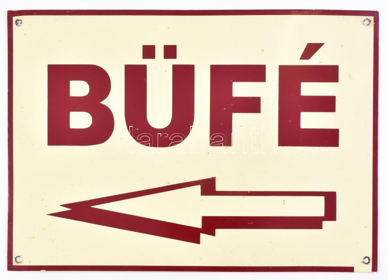 "BÜFÉ" retró fém tábla, 23×33 cm https://www.darabanth.com/hu/399-Gyorsarveres/399.0/Mutargy-papirregiseg-egyeb/Bolhapiac~500014/BUFE-retro-fem-tabla-23C39733-cm~II2435542