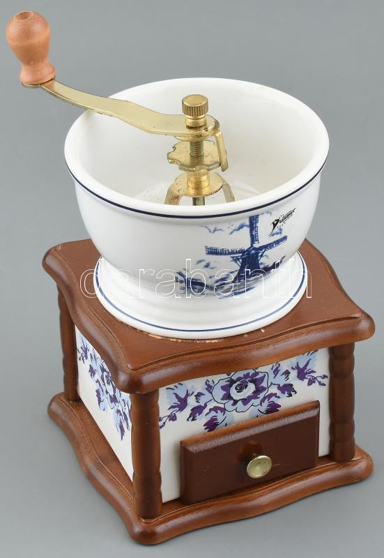 Leírás: Bergner kávédaráló, fajansz, fa, hibátlan m: 18,5 cm