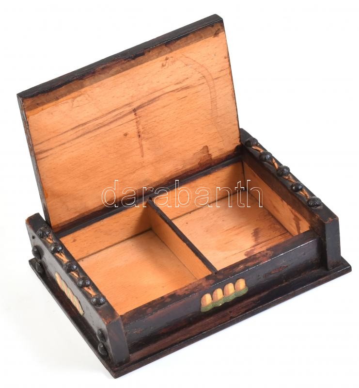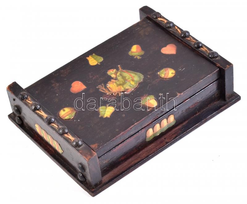 Leírás: Fa kártyatartó doboz, kopásnyomokkal, 16×12×4,5 cm