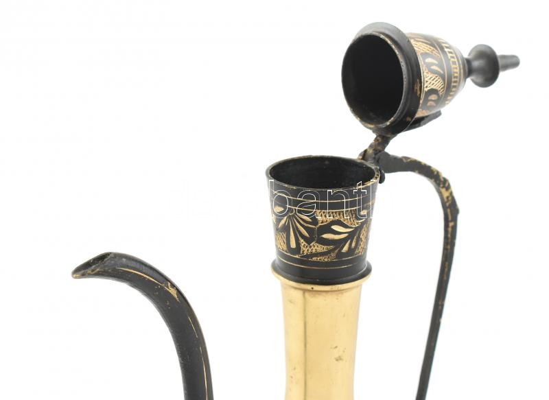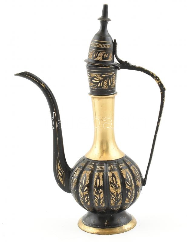 Leírás: Keleti fém kiöntő sérült m: 24 cm