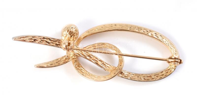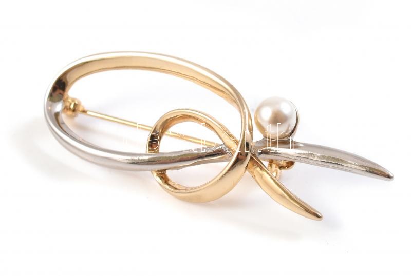 Leírás: Modern bross műanyag gyönggyel, arany és ezüst színű. 5,5x2cm