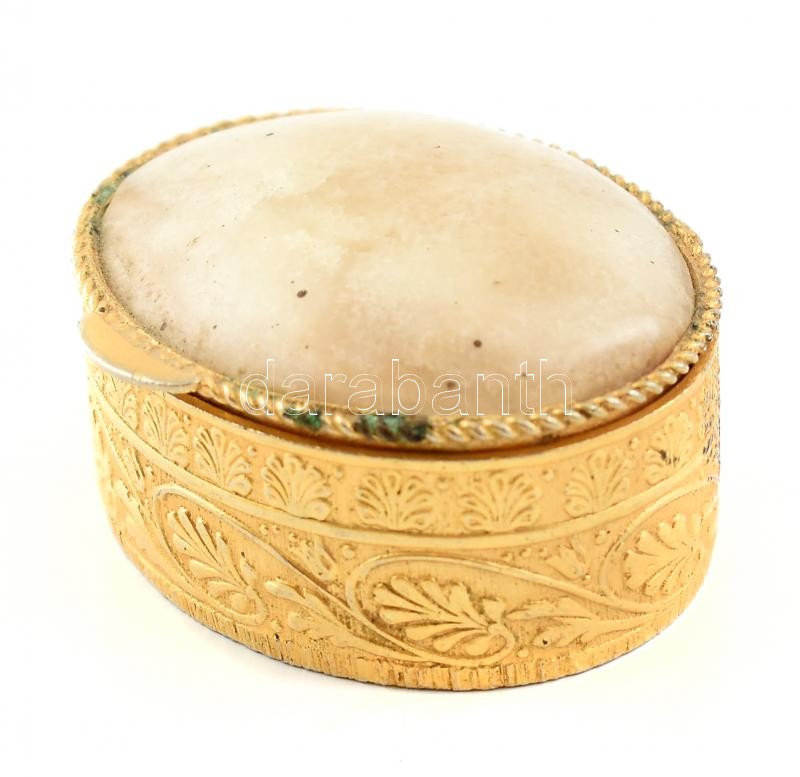 Leírás: Réz-ónix ékszeres dobozka, 4×6,5×2 cm