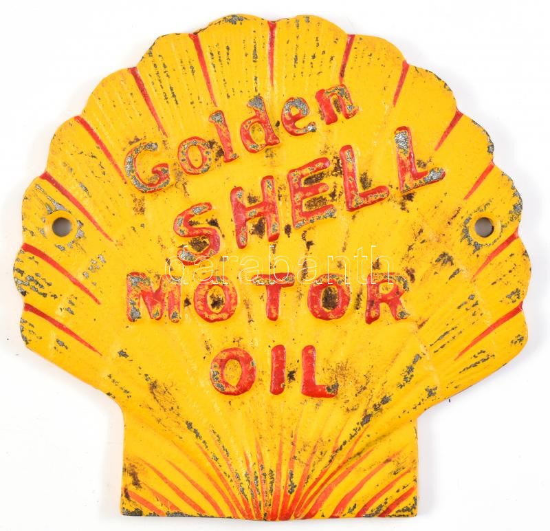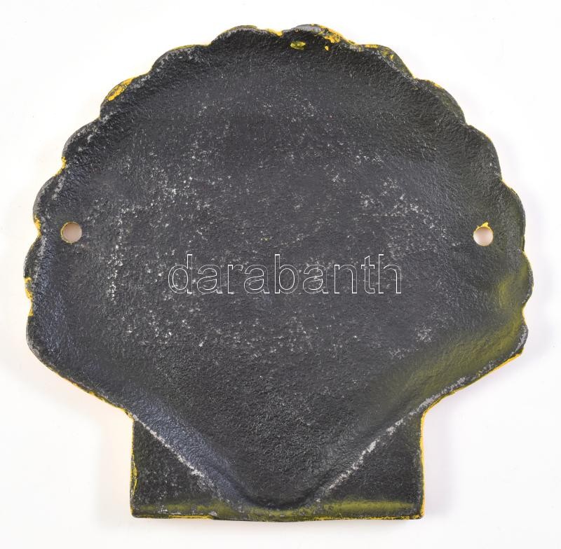 Leírás: Shell festett öntöttvas fém tábla, kopásnyomokkal, 17×17 cm