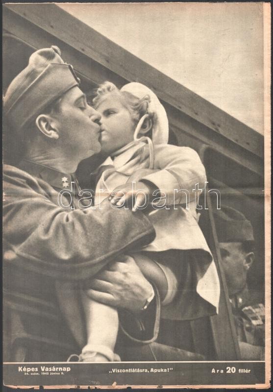 Képes Vasárnap. 1942. jún. 9., 24 sz. II. világháborús írásokkal, képekkel. Nagyon gazdag fekete-fehér fotóanyaggal illusztrált, hajtásnyommal, lap alján apró szakadásokkal