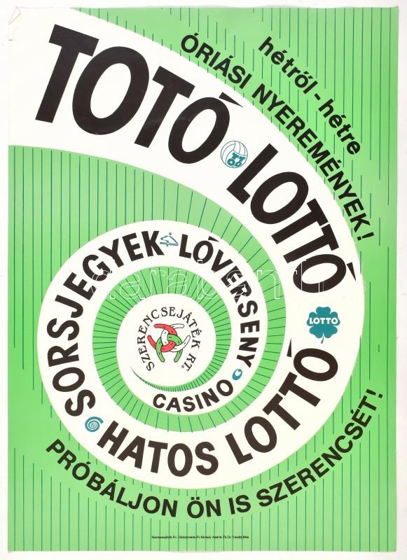 TOTÓ-LOTTÓ plakát, 42×29 cm https://www.darabanth.com/hu/399-Gyorsarveres/399.0/Mutargy-papirregiseg-egyeb/Plakat~500037/TOTO-LOTTO-plakat-42C39729-cm~II2434148