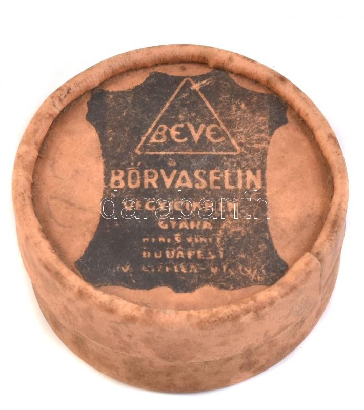 Leírás: BEVE Bőrvaselin papírdoboz, foltos, d: 6,5 cm