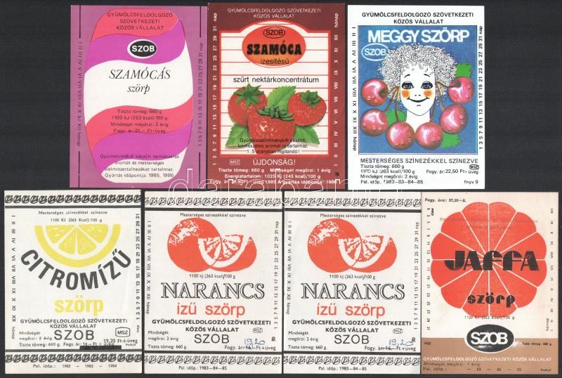 cca. 1980, 7 db klf. Szobi szörp címke, jó állapotban. https://www.darabanth.com/hu/399-Gyorsarveres/399.0/Mutargy-papirregiseg-egyeb/Reklam~500024/cca-1980-7-db-klf-Szobi-szorp-cimke-jo-allapotban~II2436219