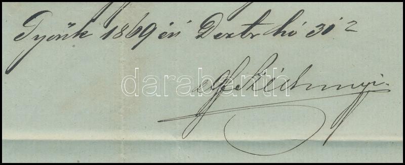 Leírás: 1869 gróf Széchenyi Sándor (1837-1913), Tolna megye főispánjának aláírt levele
