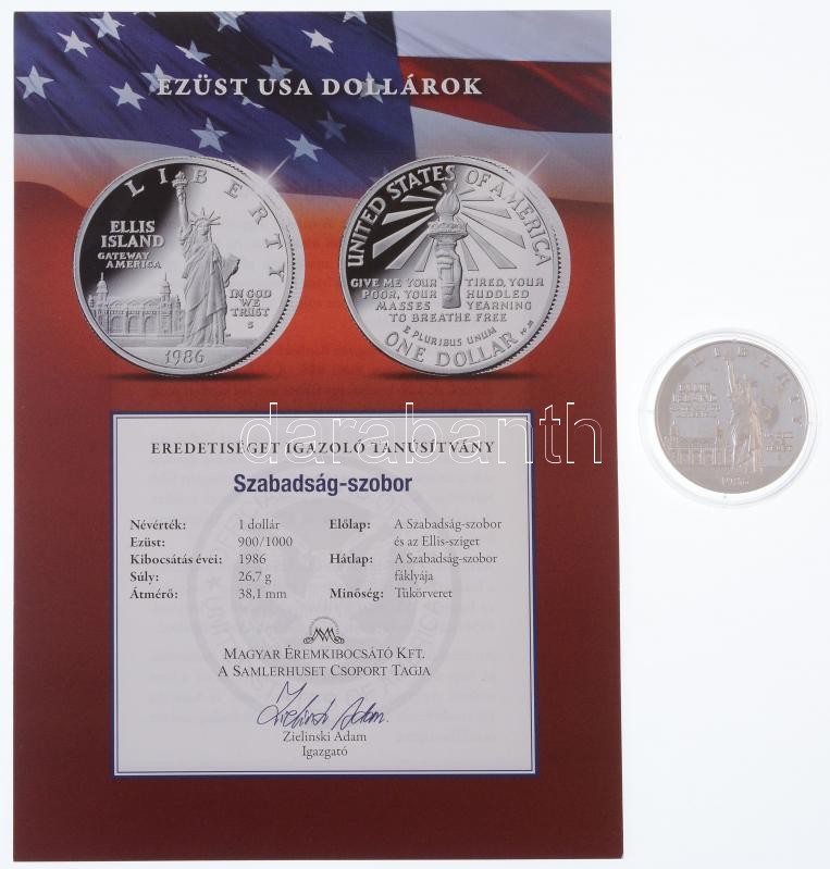 Amerikai Egyesült Államok 1986S 1$ Ag "Szabadásg szobor - Ellis Island T:PP fo.