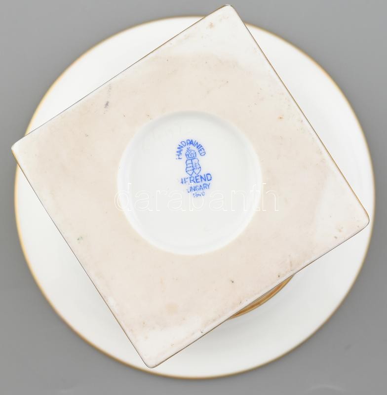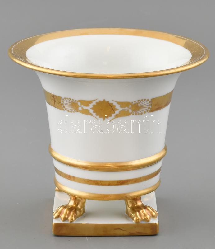 Leírás: Herendi oroszlán karmos kaspó, kézzel festett, hibátlan, kopott aranyozás, jelzett (1940), ritka, m:12,5 cm, d:14,5 cm