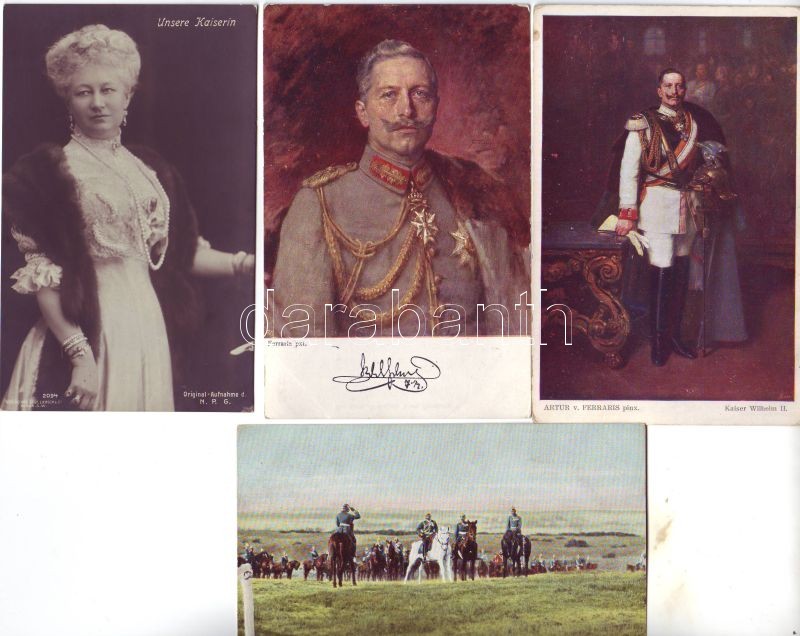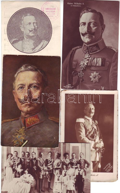 11 db Vilmos császár és császári család / 11 Stk. Kaiser Wilhelm II. +... https://www.darabanth.com/hu/4-Nagyaukcio/4.1/Motivum-kepeslapok/Kepeslap-tetelek-Ansichtskarten-Lose~1154/11-db-Vilmos-csaszar-es-csaszari-csalad-11-Stk-Kaiser-Wilhelm-II-plus-Familie~II93323