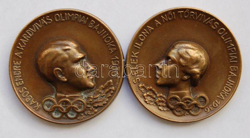 1936. Kabos Endre-S. Elek Ilona olimpiai bajnokok plakettpár Br. Szign... https://www.darabanth.com/hu/4-Nagyaukcio/4.1/Numizmatika/Olimpia-Olympische-Spiele~1142/1936-Kabos-Endre-S-Elek-Ilona-olimpiai-bajnokok-plakettpar-Br-SzignDaboczi-T2~II91729
