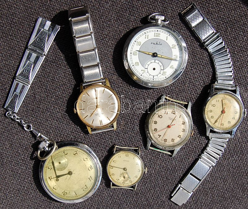 Leírás: Hagyaték tétel, órák 50-es 60-as évekből, 2 db zsebóra-Ruhla, Chronos + 4 db karóra-Ruhla, Tiptop (Svájc), Tamino (Svájc), Cornavin (Svájc, működőképes!)
