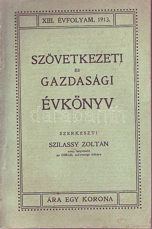 1913 Szövetkezeti és gazdasági évkönyv https://www.darabanth.com/hu/40-Gyorsarveres/40.0/Festmeny-mutargy-papirregiseg-egyeb/Nyomtatvany-Printings~167/1913-Szovetkezeti-es-gazdasagi-evkonyv~II73649