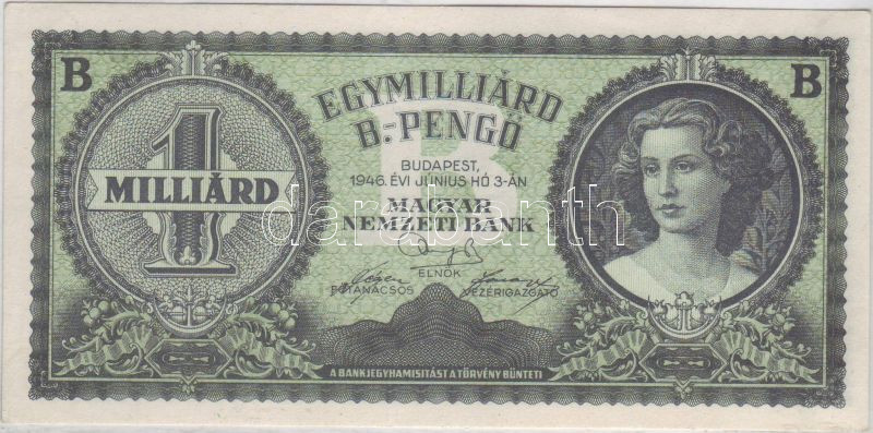 1946. 1000.000.000B.-pengő (zöld) T:I https://www.darabanth.com/hu/40-Gyorsarveres/40.0/Numizmatika/Kulfoldi-es-magyar-bankjegyek~170/1946-1000000000B-pengo-zold-TI~II78141