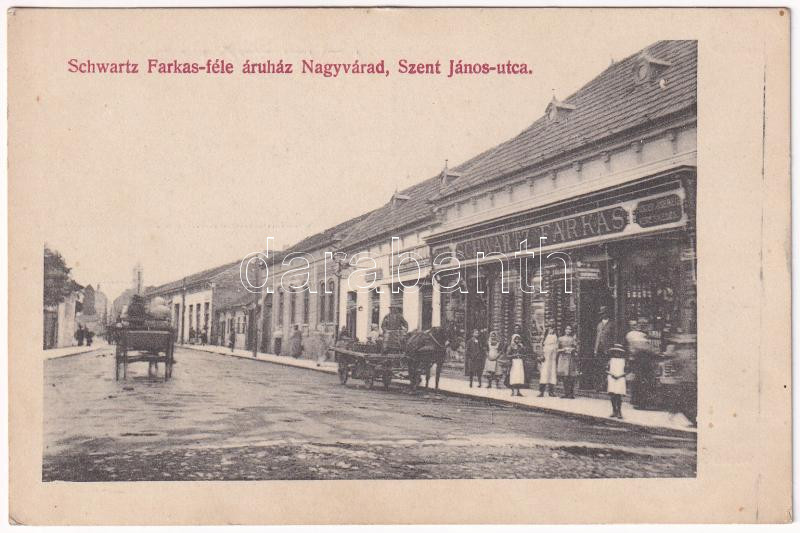 Nagyvárad, Oradea; Schwartz Farkas-féle áruház üzlete és saját kiadása... https://www.darabanth.com/hu/40-Nagyaukcio/40.1/Kepeslapok/Erdely~16469/Nagyvarad-Oradea-Schwartz-Farkas-fele-aruhaz-uzlete-es-sajat-kiadasa-Szent-Janos-utca-~II2856904