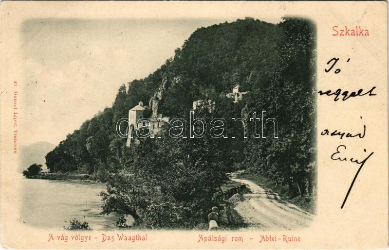 1901 Vágsziklás, Szkalka, Szkalka-Benedek, Skalka nad Váhom; Apátsági rom a Vág völgyében. Gansel Lipót 43. / Abtei-Ruine, Das Waagtal / abbey ruins in Povazie