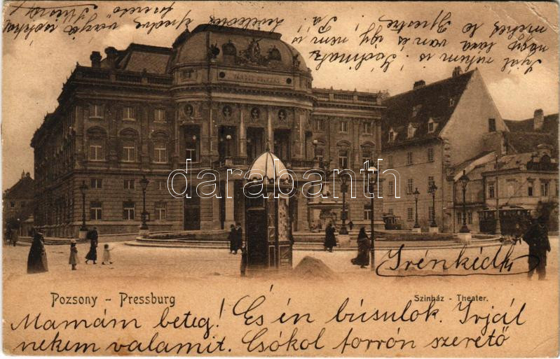 1904 Pozsony, Pressburg, Bratislava; Színház, újságos kioszk / theatre... https://www.darabanth.com/hu/40-Nagyaukcio/40.1/Kepeslapok/Felvidek~16470/1904-Pozsony-Pressburg-Bratislava-Szinhaz-ujsagos-kioszk-theatre-newspaper-stand-EB~II2857723