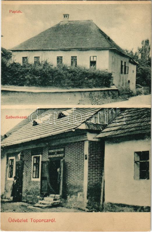 Leírás: 1911 Toporc, Toporec; Paplak, Fogyasztási szövetkezet üzlete és saját kiadása / parsonage, cooperative shop
