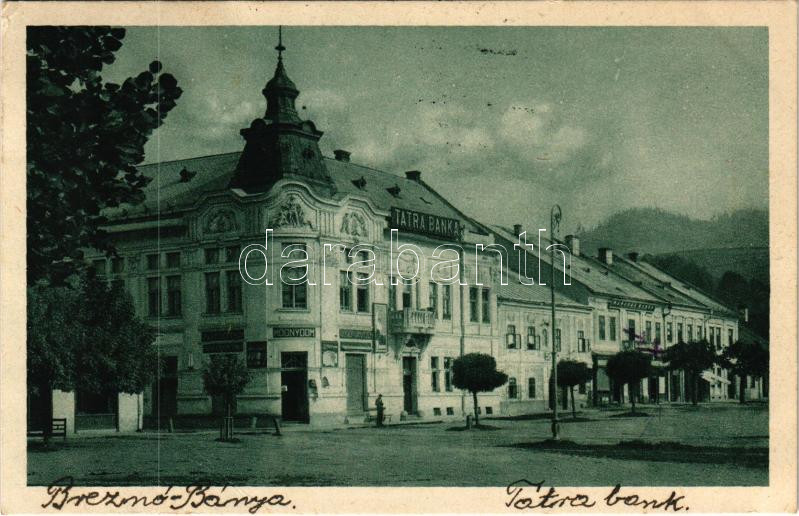 Leírás: 1929 Breznóbánya, Brezno nad Hronom; Tátra Bank, üzlet / bank and shop (EK)