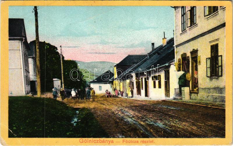 Leírás: Gölnicbánya, Göllnitz, Gelnica; Fő utca, üzlet. B. Friedmann kiadása / main street, shop (r)