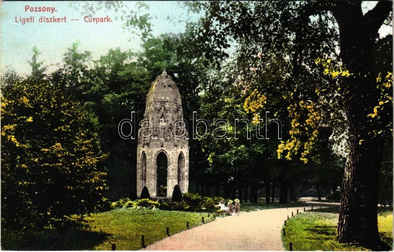 Leírás: Pozsony, Pressburg, Bratislava; Ligeti díszkert, Ferenciek tornya / park, tower