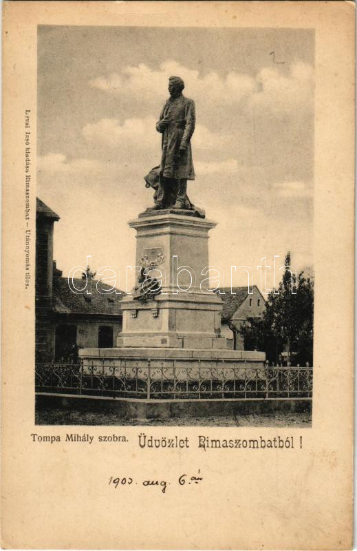 Rimaszombat, Rimavská Sobota; Tompa Mihály szobor. Lévai Izsó kiadása ... https://www.darabanth.com/hu/40-Nagyaukcio/40.1/Kepeslapok/Felvidek~16470/Rimaszombat-Rimavska-Sobota-Tompa-Mihaly-szobor-Levai-Izso-kiadasa-statue~II2857672