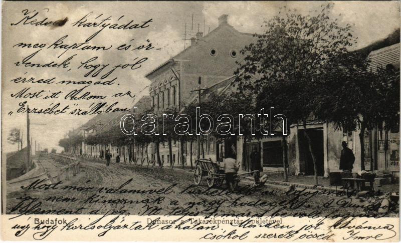 1905 Budapest XXII. Budafok, Dunasor a takarékpénztár épületével, lova... https://www.darabanth.com/hu/40-Nagyaukcio/40.1/Kepeslapok/Magyarorszag~16468/1905-Budapest-XXII-Budafok-Dunasor-a-takarekpenztar-epuletevel-lovaskocsi-villamossin-fo~II2874722