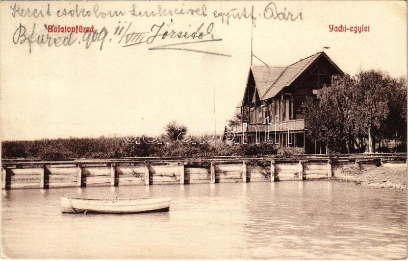 1909 Balatonfüred, Yacht egylet. Koller Károly József kiadása https://www.darabanth.com/hu/40-Nagyaukcio/40.1/Kepeslapok/Magyarorszag~16468/1909-Balatonfured-Yacht-egylet-Koller-Karoly-Jozsef-kiadasa~II2860806