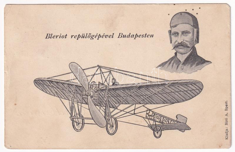 1909 Budapest, Bleriot repülőgépével Budapesten. Biró A. kiadása (EM) https://www.darabanth.com/hu/40-Nagyaukcio/40.1/Kepeslapok/Magyarorszag~16468/1909-Budapest-Bleriot-repulogepevel-Budapesten-Biro-A-kiadasa-EM~II2876585