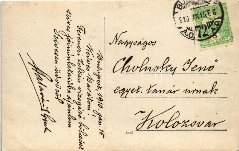 Leírás: 1910 Budapest III. Óbuda, Kiscelli Mésztufa. photo - Cholnoky Jenőnek címzett levél