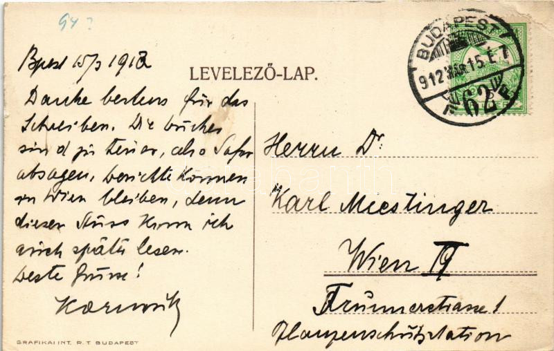Leírás: 1912 Budapest VI. István Király szálloda, villamosok, automobil, reklám. Podmaniczky utca 8. Grafikai Int. rt. litho (EB)
