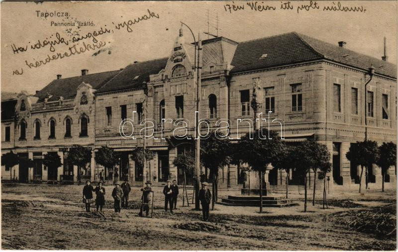 Leírás: 1913 Tapolca, Pannonia szálló, Kemény áruháza. Löwy B. kiadása (r)