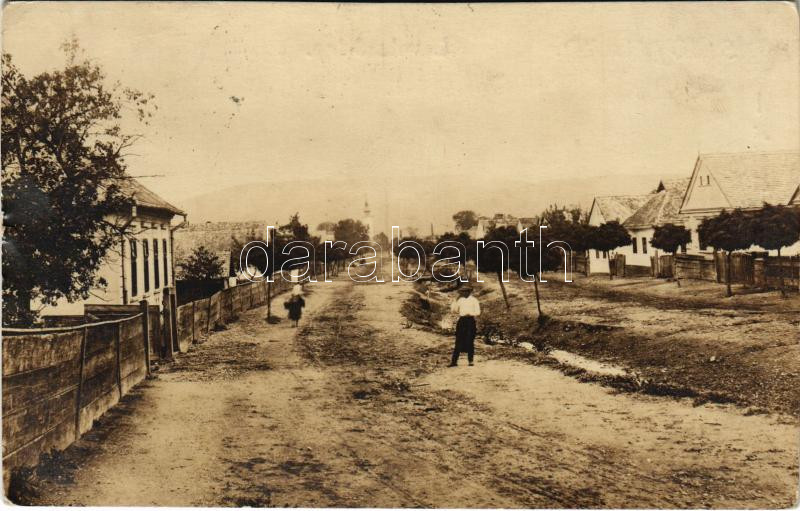 Leírás: 1926 Sajóvelezd, templom, utca. Polónyi műterme, photo (gyűrődés / crease)