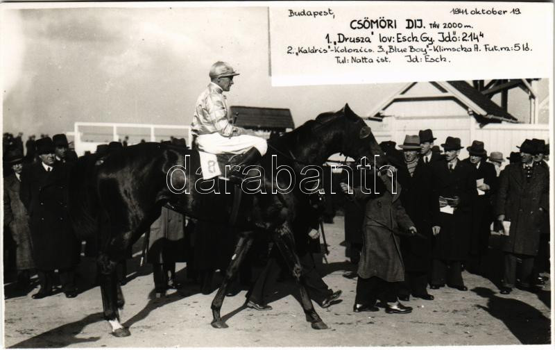 1941 Budapest IV. Káposztásmegyer, Csömöri Díj lóverseny. 1. Drusza lo... https://www.darabanth.com/hu/40-Nagyaukcio/40.1/Kepeslapok/Magyarorszag~16468/1941-Budapest-IV-Kaposztasmegyer-Csomori-Dij-loverseny-1-Drusza-lov-Esch-Gy-Schaffer-~II2874077